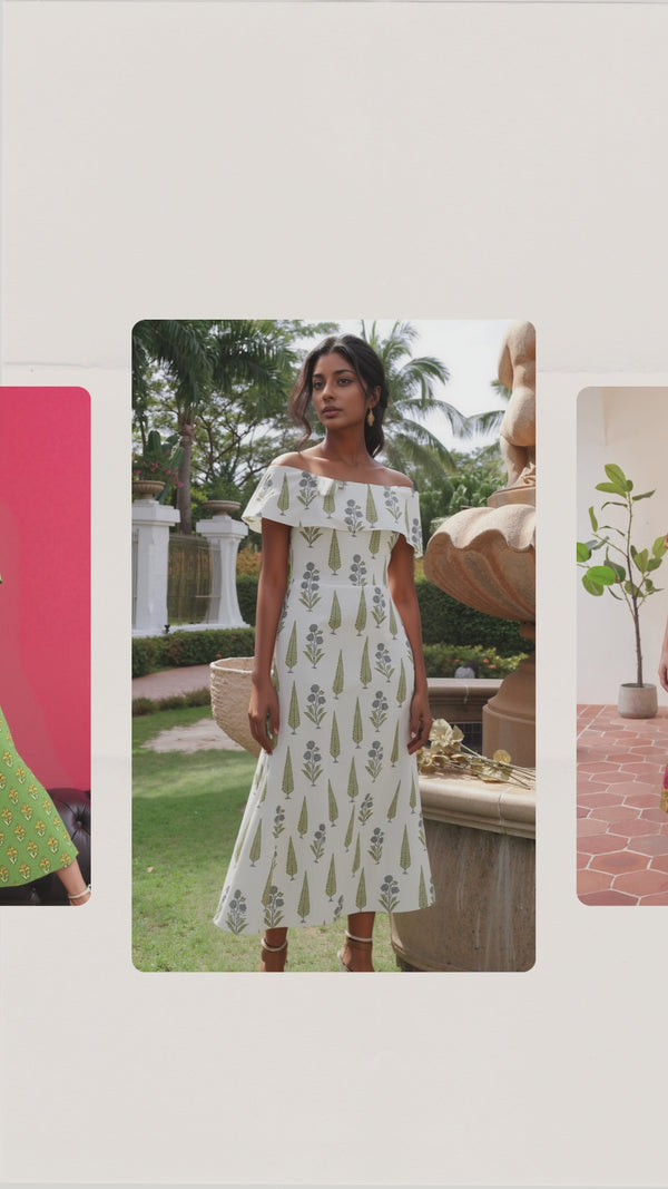 Crop Top with Boat Neck Details Cotton Dress