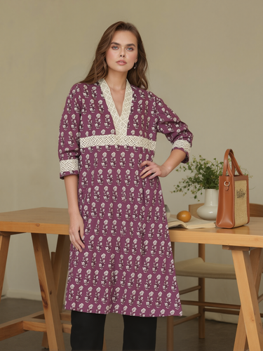Step into effortless elegance with our enchanting Lilac Poppy Flower Print Kurta. Crafted from sumptuously soft, breathable cotton, this long-sleeved top offers unparalleled comfort and style.