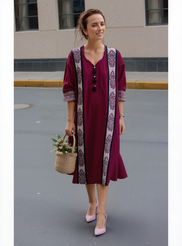 This maroon kurta features a solid color design crafted from breathable cotton fabric, ensuring comfort throughout the day. Its sweetheart neckline adds a subtle elegance, while the absence of collar and lapel creates a clean, modern silhouette. Designed with long sleeves and a traditional kurta style, this piece offers a versatile option for both casual and semi-formal occasions.