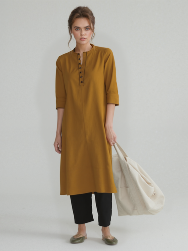 Embrace vibrant charm with our Yellow Solid Color Kurta Suit. Crafted from breathable cotton, this classic piece features a sophisticated Mandarin collar and long sleeves, offering both comfort and timeless elegance. Its radiant yellow hue makes a striking statement, perfect for casual outings or festive gatherings. A versatile and essential addition to your wardrobe, designed for effortless style and all-day comfort.