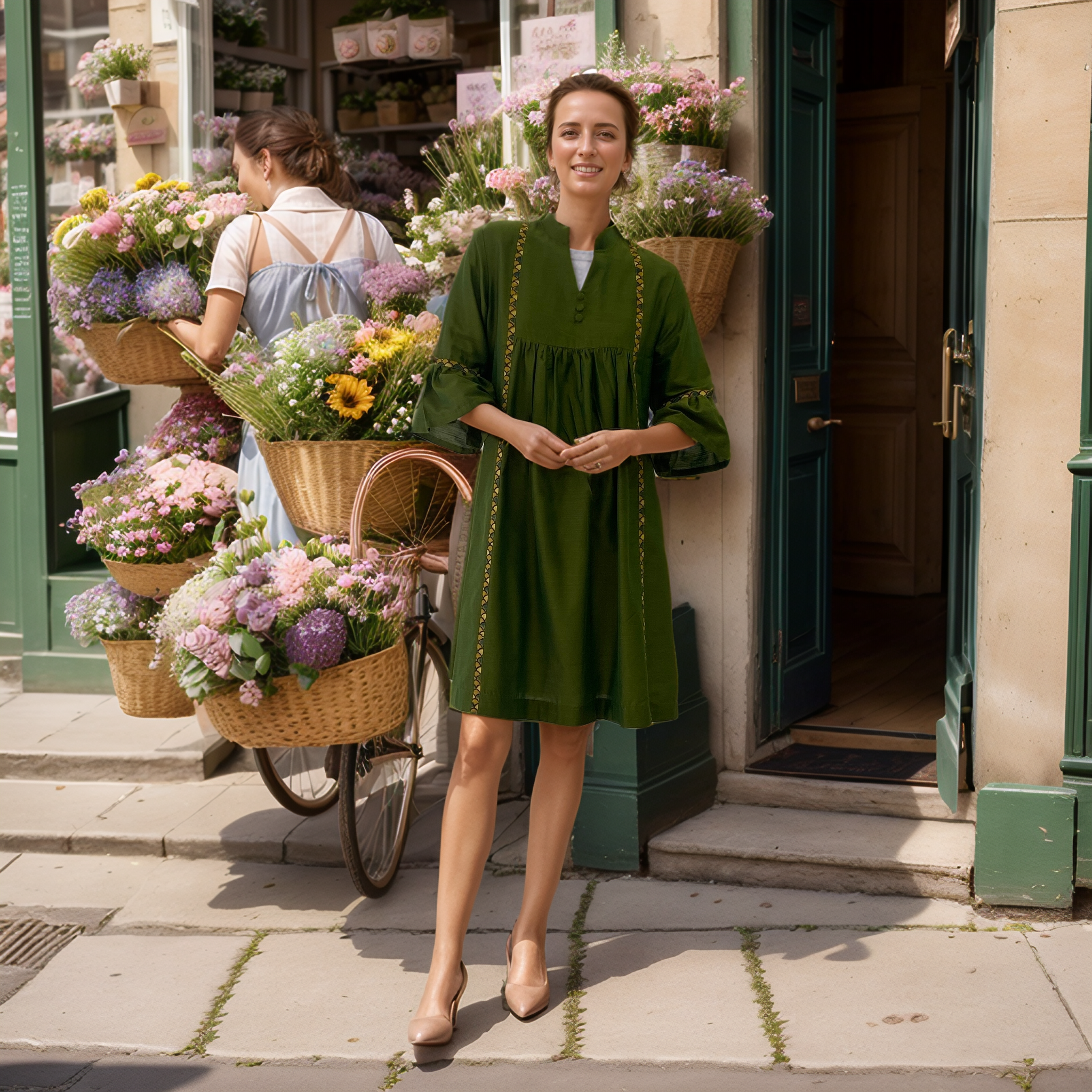 Look effortlessly stylish in this Olive Green Kurta made from soft Cotton Slub Fabric. Perfect for summer and casual occasions, its peplum style and V-neck neckline add a trendy touch. Featuring a solid print and delicate printed patti, this dress is a must-have for any fashion-forward individual.