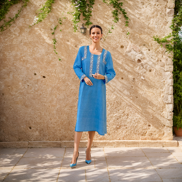 Sky Blue with Floral Embroidered Lace Cotton Dress