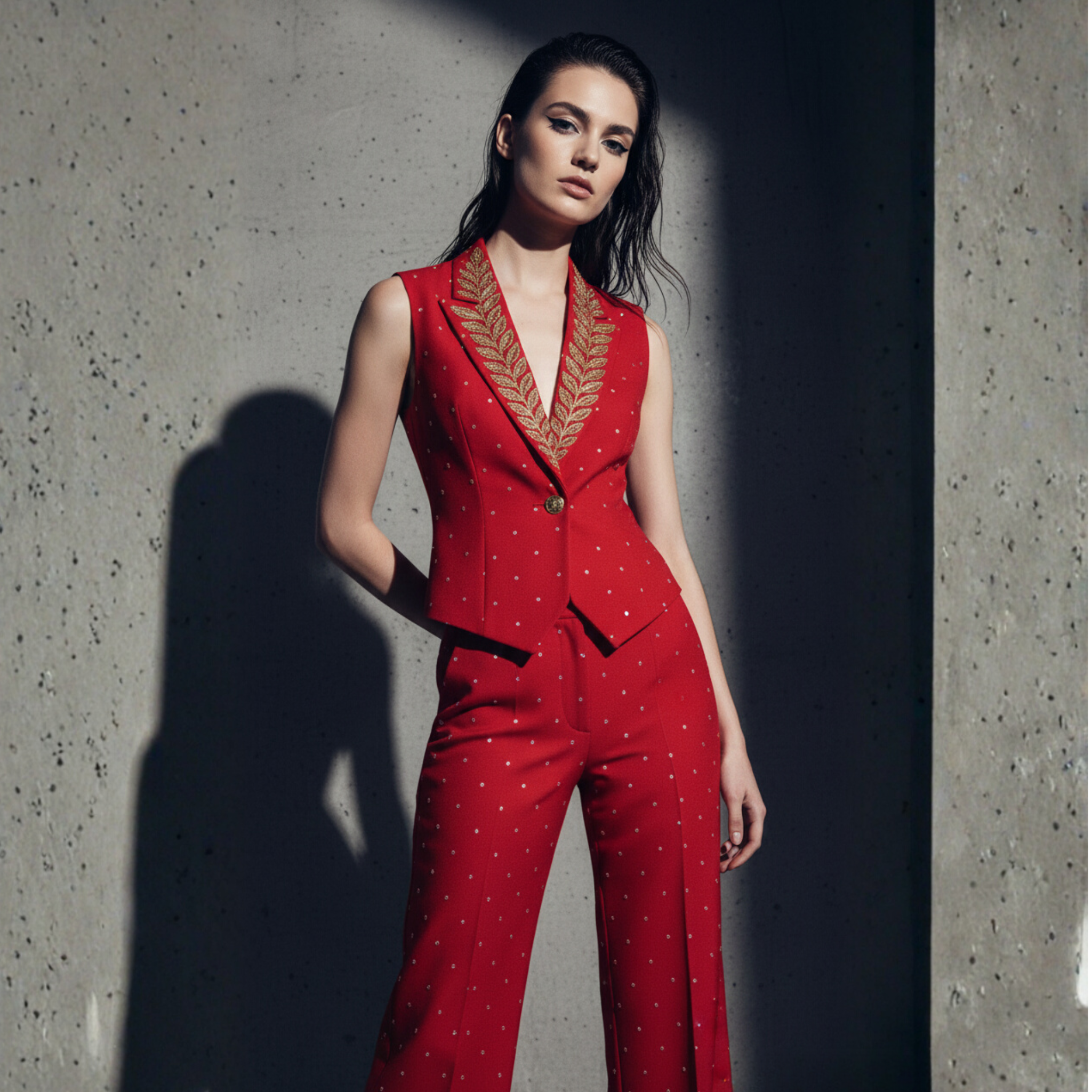 Scarlet & Gold Embroidered Co-ord Set