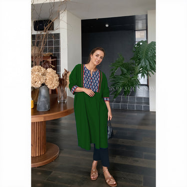 Expertly crafted Green Solid Color Kurta Shirt combines traditional silhouette with contemporary styling. Features premium fabric construction for exceptional comfort and durability. The versatile solid green hue transitions effortlessly from casual daywear to semi-formal occasions, making it an essential addition to any modern wardrobe.