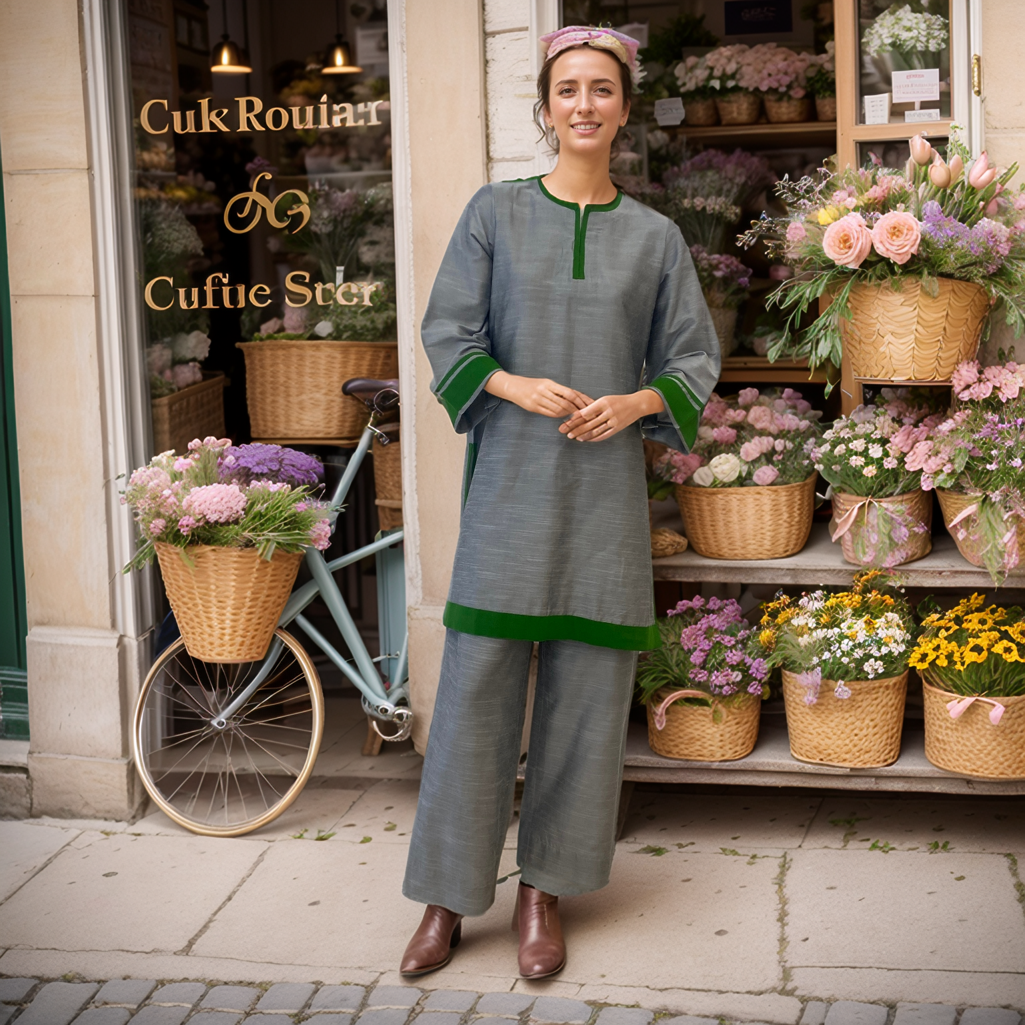 Upgrade your wardrobe with our Grey And Green Patti Knee Length Kurta! Made from soft and comfortable Cotton Slub Fabric, this A-Line style kurta features a unique solid print and a round neckline for a flattering and elegant look. Perfect for any occasion, this kurta is suitable for all year round and adds a touch of sophistication to your casual outfits. Get yours now and elevate your style game!