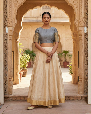 This piece is a masterclass in understated luxury. Crafted from a lustrous silk-blend fabric in a unique shade of metallic slate grey, it offers a refreshing alternative to traditional jewel tones. The silhouette is defined by a chic high boat neckline that provides an elegant, modern frame for the face.