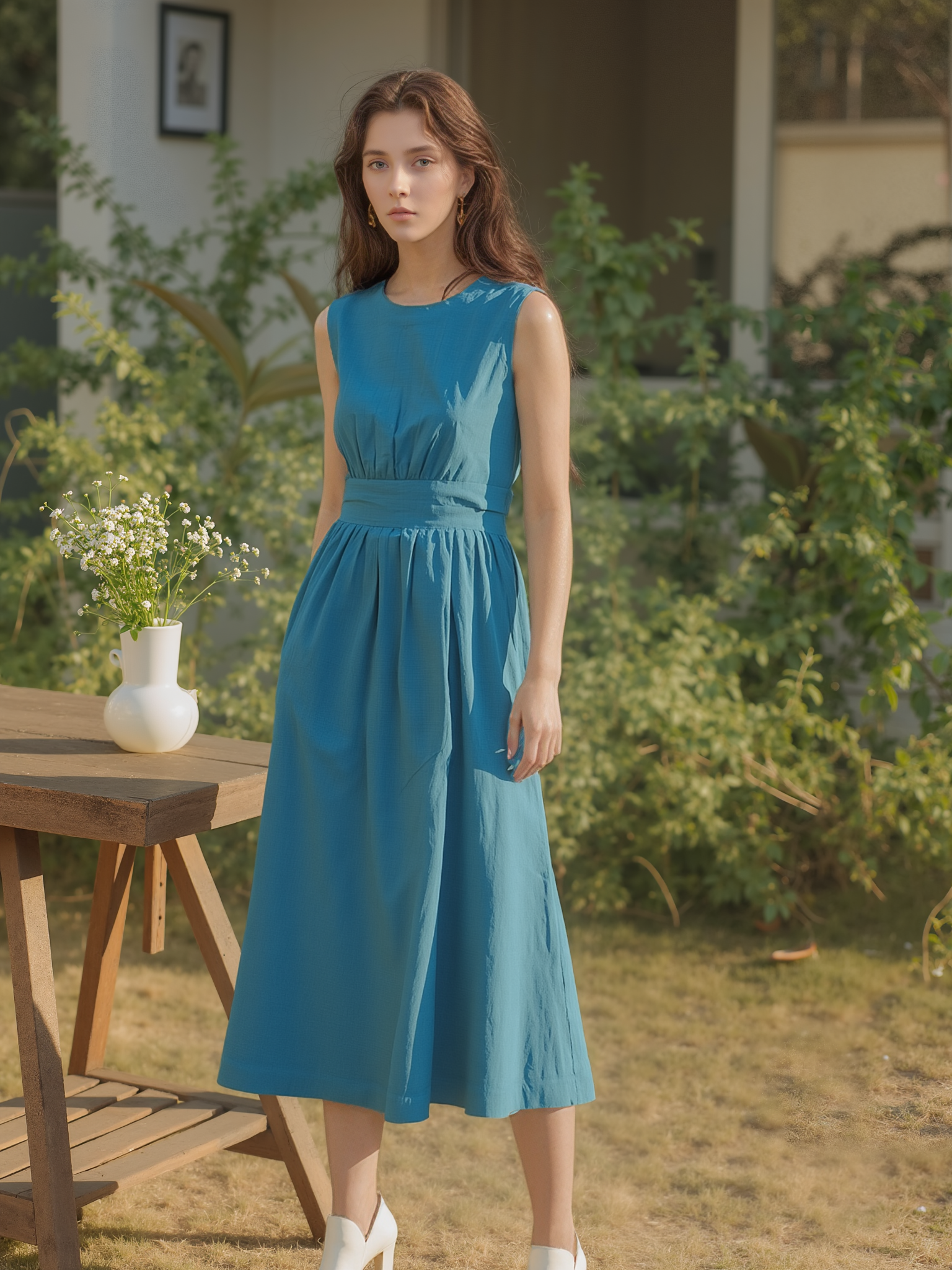 Embrace serene confidence in our Teal Green Cotton Pinafore Maxi Dress. This thoughtfully designed piece, with its classic crew neckline and flowing sleeveless silhouette, offers ultimate comfort and mindful style. Handcrafted from soft, breathable cotton, it's a versatile canvas for your unique expression. Feel beautifully reassured, knowing your elegance is consciously crafted.